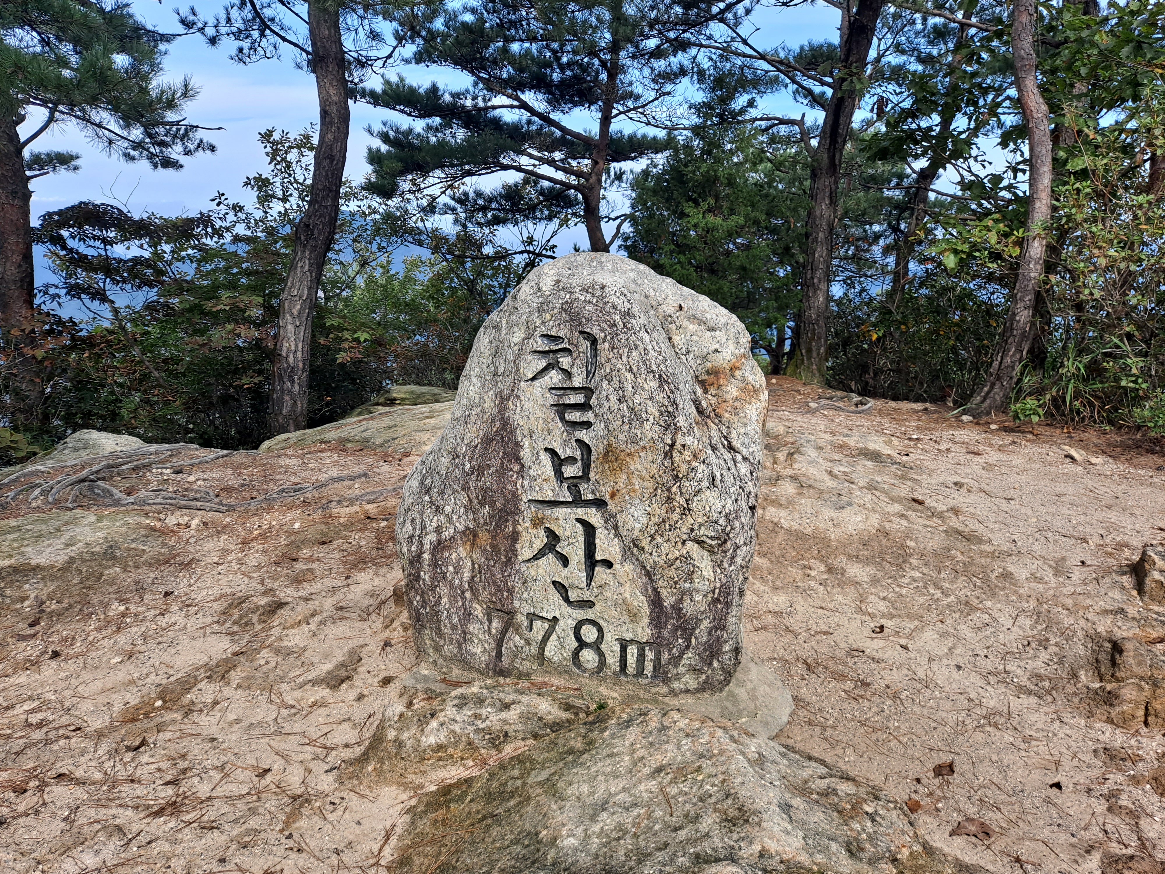 칠보산 정상석은 예나 지금이나 그 자리에 있었다. 정상석이 있는 곳에서 조금 바깥으로 나갔더니 주변 조망을 관찰할 수 있는 전망대가 나왔다. 이곳저곳을 살펴보았다. 높데데한 봉우리들은 대부분 올라가 봤던 곳이었다. 멀리 안갯속에 숨은 산들이 희끄무레했지만 추억을 상기하기에는 모자람이 없었다. 아내가 어디서 밥 먹을지 물어왔다. 활목재 쪽으로 조금 더 가다가 밥을 먹자고 하면서 다시 길을 나섰다. 데크길이 있었고, 가파른 계단도 나왔다. 바위에 붙어서 얼굴을 내민 구절초가 청초했다. 활목재가 가까워진 곳에 밥터가 있었다. 금줄을 잠깐 넘어가야 하는 곳인데. 이 정도는 국공이 봐주겠지. 자리를 깔고 즉석밥을 꺼냈다. 소고기비빔밥. 물을 넣고 십 분을 기다렸다가 고추장과 참기름으로 간이 된 밥을 비벼서 먹었다. 물이 부족했는지 밥이 덜 익었다. 아내는 그렇거나 말거나 잘만 먹었다. 시간이 자잘하게 흘러갔다.